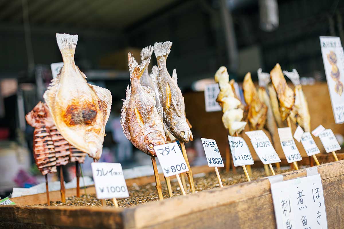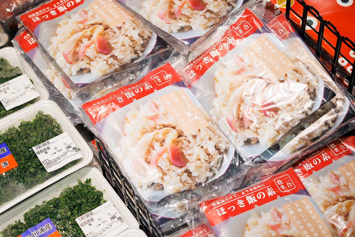 リニューアルオープンしたばかりの広い店内には、すぐそばの漁港で水揚げされた新鮮な相馬の海産物をはじめとする様々な「地のもの」がそろいます。大堀相馬焼や浜の駅オリジナルグッズなど、雑貨も充実。今晩のおかずに、お土産に…じっくり選びます。